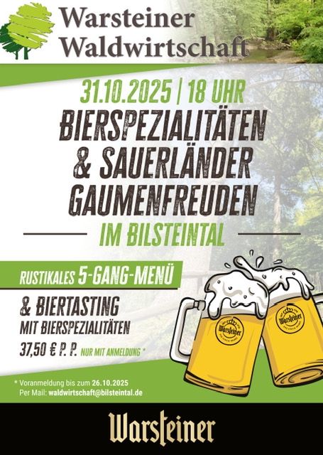 Mit der Warsteiner Waldwirtschaft direkt am Parkplatz des Bilsteintals runden wir unser Angebot für Sie ab: Hier können Sie den erlebnisreichen Tag in gemütlicher Atmosphäre ausklingen lassen.