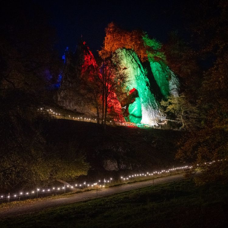 Das durchwachsene Wetter mit zum Teil stürmischem Wind und mitunter starken Regenschauern forderte Tribut: Deutlich geringer als in den Vorjahren war am Samstagabend der Andrang beim „Leuchtenden Bilsteintal“ im Wildpark in Warstein, statt wie zuletzt knapp 1000 Besucherinnen und Besucher kauften sich „nur“ rund 650 ein Ticket für den Gang durch die Tropfsteinhöhle.