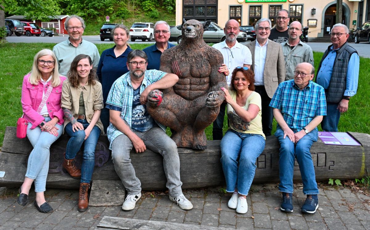 Einen der Neuzugänge im Bilsteintal, einen Werwolf, für den rege nachgefragten Bogenparcours mit Fantasyfiguren nahmen die wiedergewählten Vorstandsmitglieder sowie der Beirat in die Mitte: Bernd Belecke (1. Vorsitzender), Jordis Schulte (Beirat), Hans-Jürgen Stappert (Beirat), Burkhard Ströcker (Schatzmeister), Rüdiger Brüggemann (Beirat), Christian Clewing (Schriftführer), Bertram Mestermann (2. Vorsitzender), Theo Verhoeven (Beirat) (hinten von links) sowie Birgit Kraft-Pankoke (Beirat), Lena Hoffeld (Betriebsleiterin), Hans Wiese (Beirat), Iris Belecke-Severin (Beirat) und Wolfgang Landfester (Beisitzer) (vorne von links) freuen sich über ein erfolgreiches Jahr.