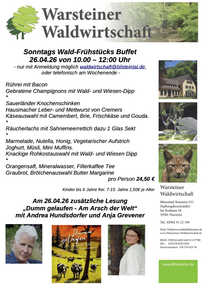 Mit der Warsteiner Waldwirtschaft direkt am Parkplatz des Bilsteintals runden wir unser Angebot für Sie ab: Hier können Sie den erlebnisreichen Tag in gemütlicher Atmosphäre ausklingen lassen.