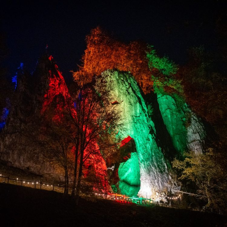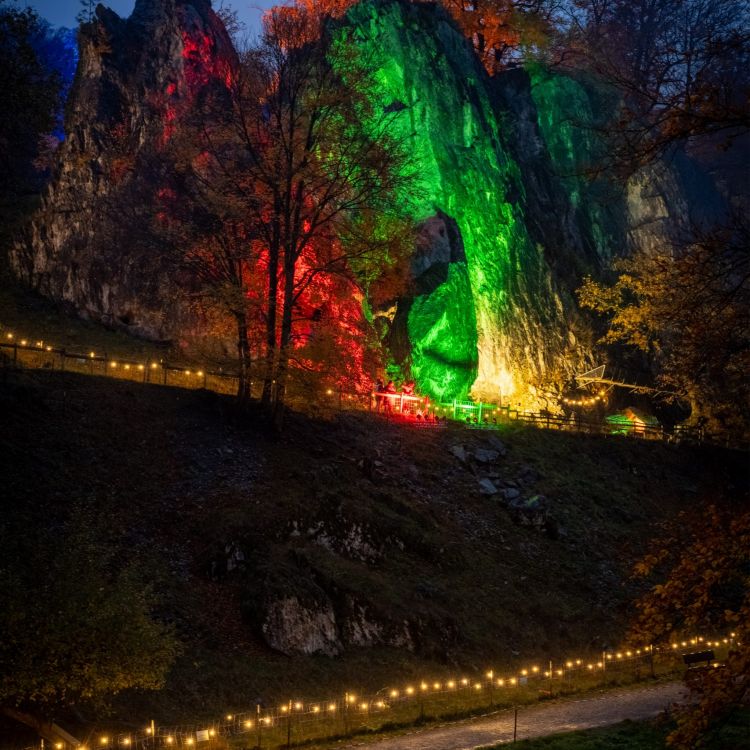 Das durchwachsene Wetter mit zum Teil stürmischem Wind und mitunter starken Regenschauern forderte Tribut: Deutlich geringer als in den Vorjahren war am Samstagabend der Andrang beim „Leuchtenden Bilsteintal“ im Wildpark in Warstein, statt wie zuletzt knapp 1000 Besucherinnen und Besucher kauften sich „nur“ rund 650 ein Ticket für den Gang durch die Tropfsteinhöhle.